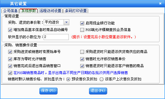 '系统参数'页中主要设置与本系统有关的一些设置,可以根据需要进行不同的设置。