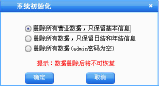 在基本设置中点击“系统维护”按钮,打开系统维护窗口再点击“系统初始化”按钮打开如图12界面。可以根据情况删除相应的数据,删除后数据将不可恢复。