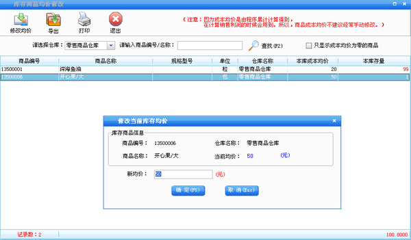 在窗口中的商品信息中可以看到所有已经增加过的商品信息,在右边的库库商品中选择仓库,可以看到该仓库中的商品。在商品信息中可以选择中一种商品点击“增加到仓库”在出现的窗口中输入期初数据和成本价,这样就可以建立该商品在指定仓库的初期帐。