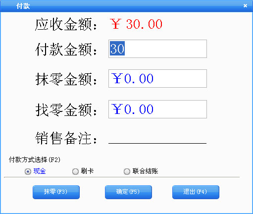 联合结账:提供现金收款、刷卡收款、现金和刷卡收款(联合收款)。 |