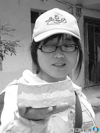 “豆腐西施”名叫蒋艳红,18岁,遂宁市安居区人。说她是“豆腐西施”一点不过分:她长得漂亮,戴副眼镜显得更加斯文。蒋艳红卖的豆腐集3种颜色于一体:上面为绿色、中间为白色、下面为淡红色,非常好看。