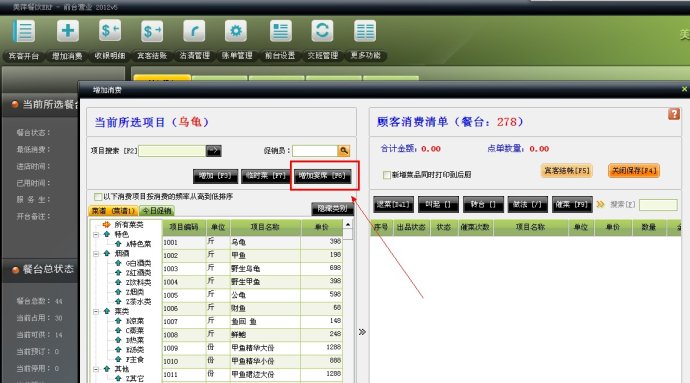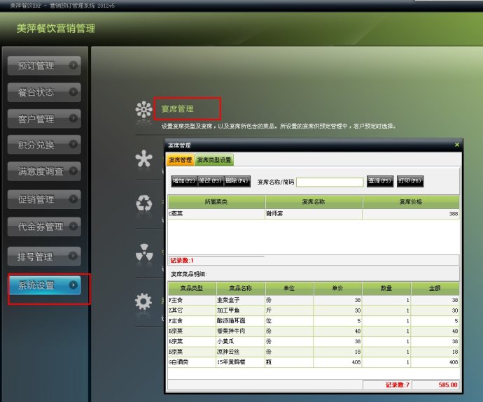 如图中方框所选,点击增加宴席,进入其中选中相应的套餐(团购、婚姻、谢师宴等等)选中即可。月底统计业绩的时候不同套餐执行不同的提成方案,剩余的执行散客提成方案即可。