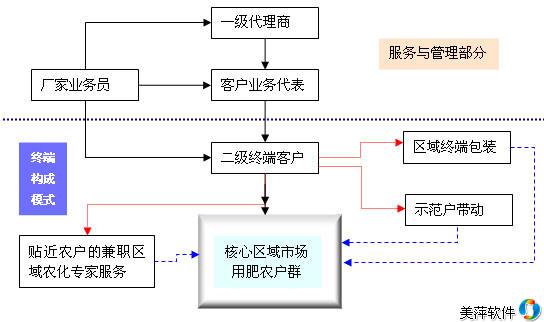 让我们再来看看,农资行业的营销现状,农资行业的终端散布在偏远的乡村,那里地广店稀,还在流行赊销,在城市里流行的那些销售理论、套路,一到农村的泥里,就拔不出脚来,听说,某位营销大师让山东的一家农资企业,去海南搞什么终端制胜,结果,什么也没搞成,却花了很多银子,得到了一身疲惫。但是,你要从微观的角度去看农资市场,你就会发现,其实农资的营销是最简单的营销,这里介绍北京迪智成公司的普惠制农资营销模型。将微观的模型做好了,由点成线、由线到面,就构筑了我们所需要的农资营销网络和农资大市场。