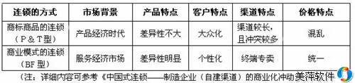 在这样的宏观环境面前,如前文所述,制造业的转型只有两条路可以走,其中最主要的一条就是商业模式的转型,而最直接的就是渠道的重新梳理和变革,通过品牌的溢价提升价值;更有效的通路设计降低成本;更有效的服务赢得持续获利的竞争优势。而商业模式连锁,无疑是最好的方式之一。