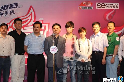 5月7日上午湖南卫视联手天娱传媒在北京正式召开“2009快乐中国•步步高音乐手机快乐女声”新闻发布会,六大中国门户网站负责人,各大电视台高层,国内外知名唱片公司高层以及冠名商高层全部悉数出席,07快男苏醒和05超女李宇春则以前辈身份寄语“后人”。
