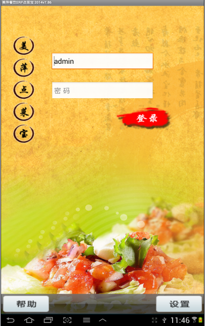 | 2、运行美萍点菜宝,打开登录界面,输入用户名,密码,点登录,进入系统主界面 |