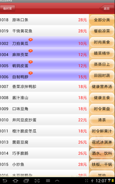 | 9、点"菜品菜单"弹出所有菜品列表 |