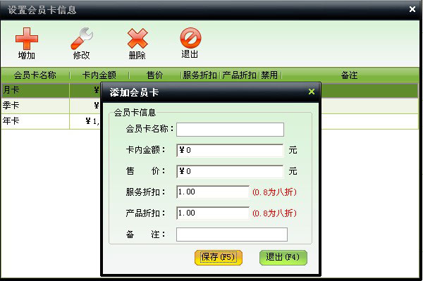 | 为了方便办理会员卡,前台增加了这个功能。详细介绍见会员管理模块。 | |