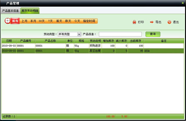 | 包括产品基本信息管理、入库、出库等操作,可设置产品套装 | |