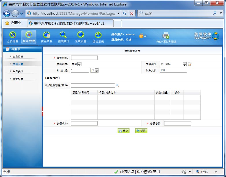 | 2.7、添加套餐项目 | |||