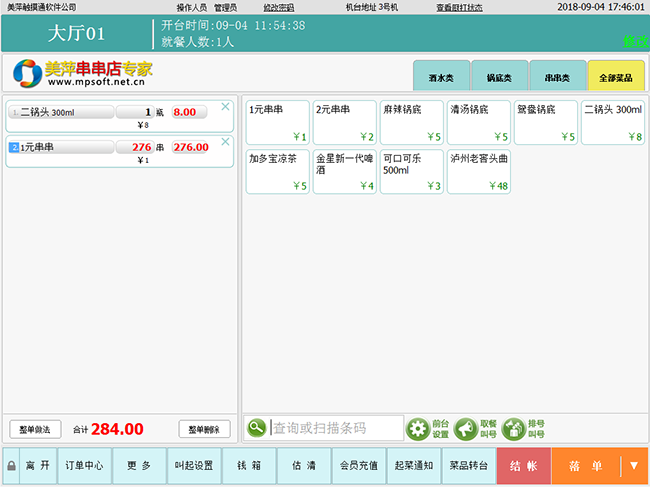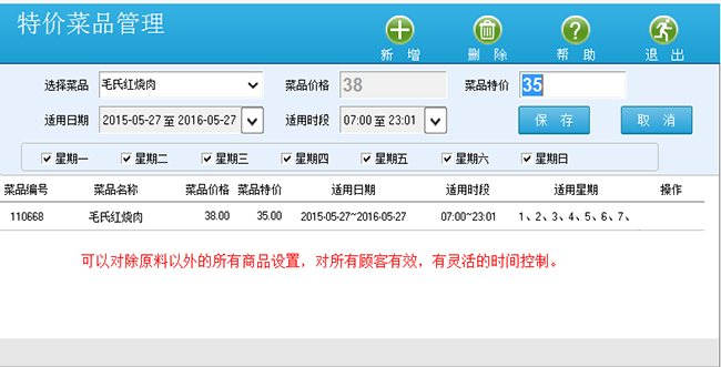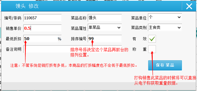 | 1.菜品沽清:分为临时沽清(隔天自动转为正常状态)和餐段长期沽清(如胡辣汤只在早餐供应,则每天超过早餐时段,胡辣汤自动进入沽清状态)。 |
