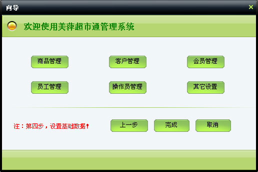 在该模块可以进行商品管理、客户管理、会员管理、员工管理、操作员管理、其它设置、数据库维护、修改密码等操作。