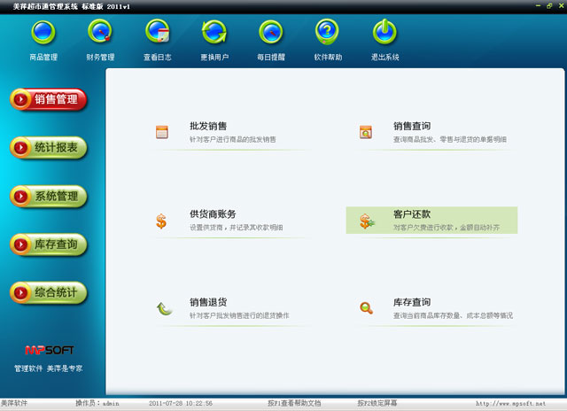 美萍超市通管理系统使用手册(批发零售管理软件,超市业务管理软件,商品零售管理系统,POS管理系统)     更新版本软件下载