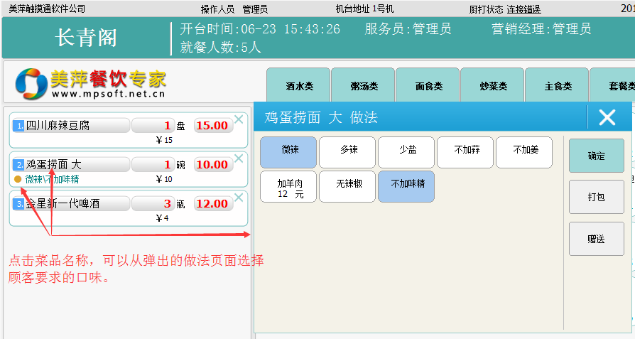| 1.菜品沽清:分为临时沽清(隔天自动转为正常状态)和餐段长期沽清(如胡辣汤只在早餐供应,则每天超过早餐时段,胡辣汤自动进入沽清状态)。 |