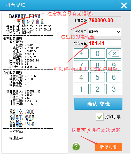 | 3.前台交班:可以按照每个机台交班,也可以采用按班次交班(所有的前台同时在一个机台交班)。 |