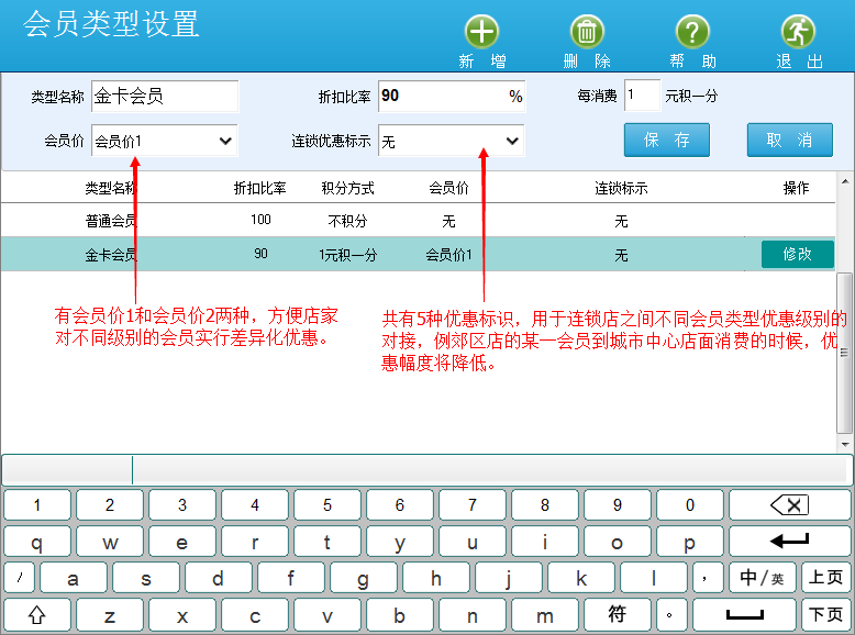 | 7.会员类型和充值方案设置:系统管理→会员类型设置和会员充值方案 |