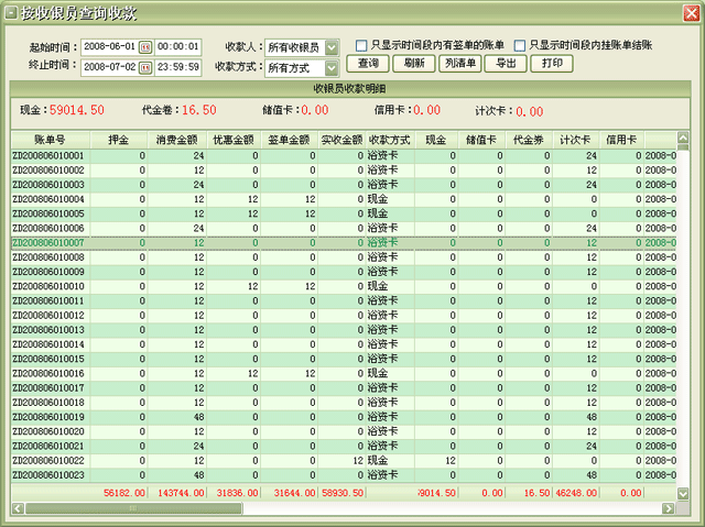 | 1、营业信息查询模块:包括来宾信息查询、在店/离店宾客消费查询、收银明细查询、退单查询、服务生提成查询、结帐单查询、挂帐查询、日/月营业报表、日/月营业统计图、营业统计排行、按消费项目分类统计、部门分类统计、部门收银汇总、账单分类统计、综合统计报表、会员查询、会员消费信息查询和储值卡会员在各分店的储值信息查询等。 |
