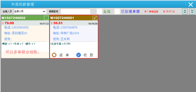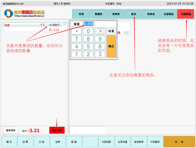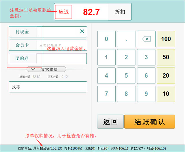 | 3.退换菜操作:只有堂吃和外卖收过款后才能在新近账单的单据中进行此操作。 |