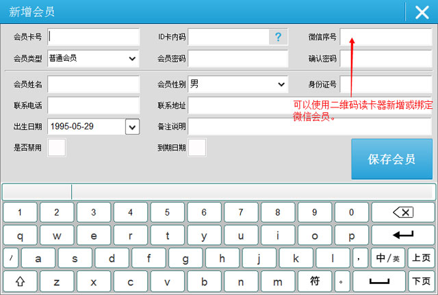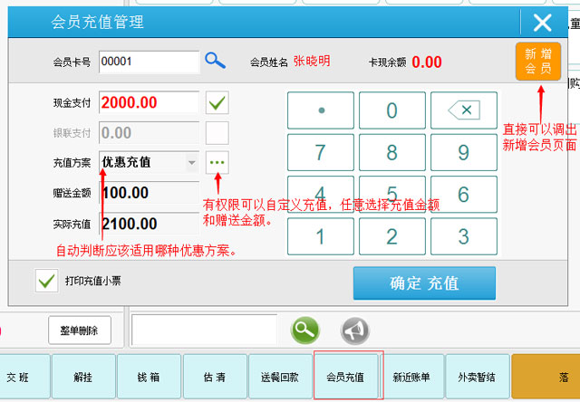 | 2.前台页面方便的新增会员和充值业务: |