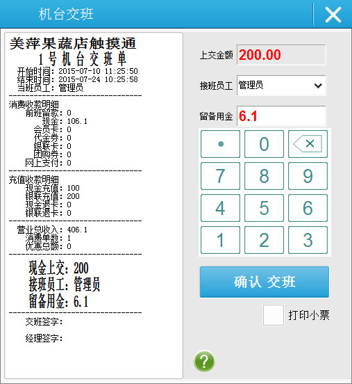 | 3.前台交班:可以按照每个机台交班,也可以采用按班次交班(所有的前台同时在一个机台交班)。 |
