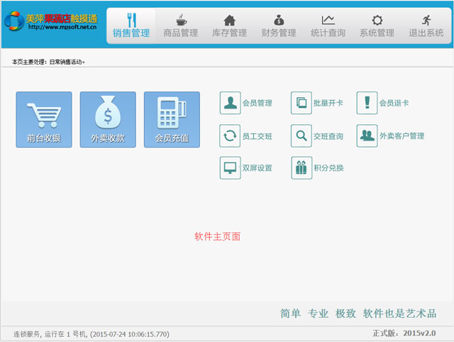 | 1.店面消费:从系统主界面→前台收银 |