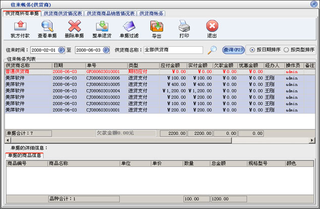 2.3.3、往来帐务(供货商) |