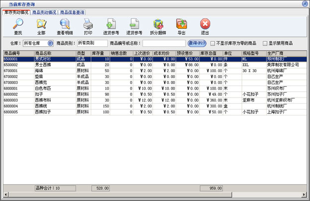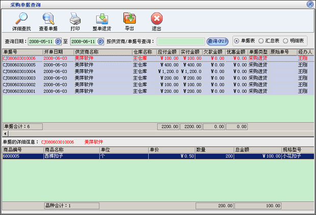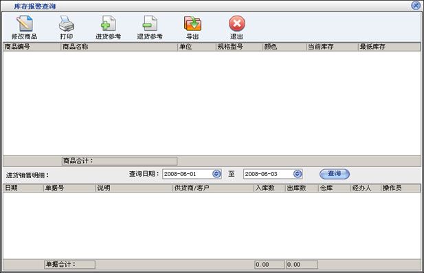 进货管理:进行商品采购入库,采购退货,进/退单据和当前库存查询,与供货商的往来帐务。