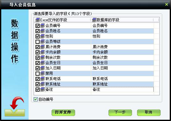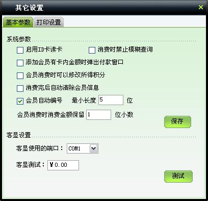 | 2.3.1、系统参数:选中“启用ID卡读卡”选项,则添加会员时可以输入会员ID卡号,当会员消费时只能输入会员ID卡号进行查询。 |