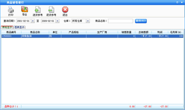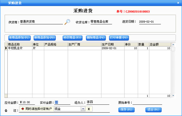 进货管理:进行商品采购入库,采购退货,进/退单据和当前库存查询,与供货商的往来帐务。