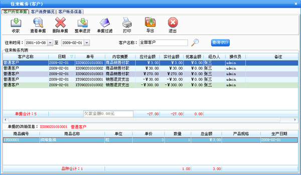 统计报表:完整的统计查询功能,每张单据每次收款付款都可以清楚的反映。