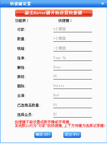 快捷键设置:设置 POS 中各功能的快捷键。