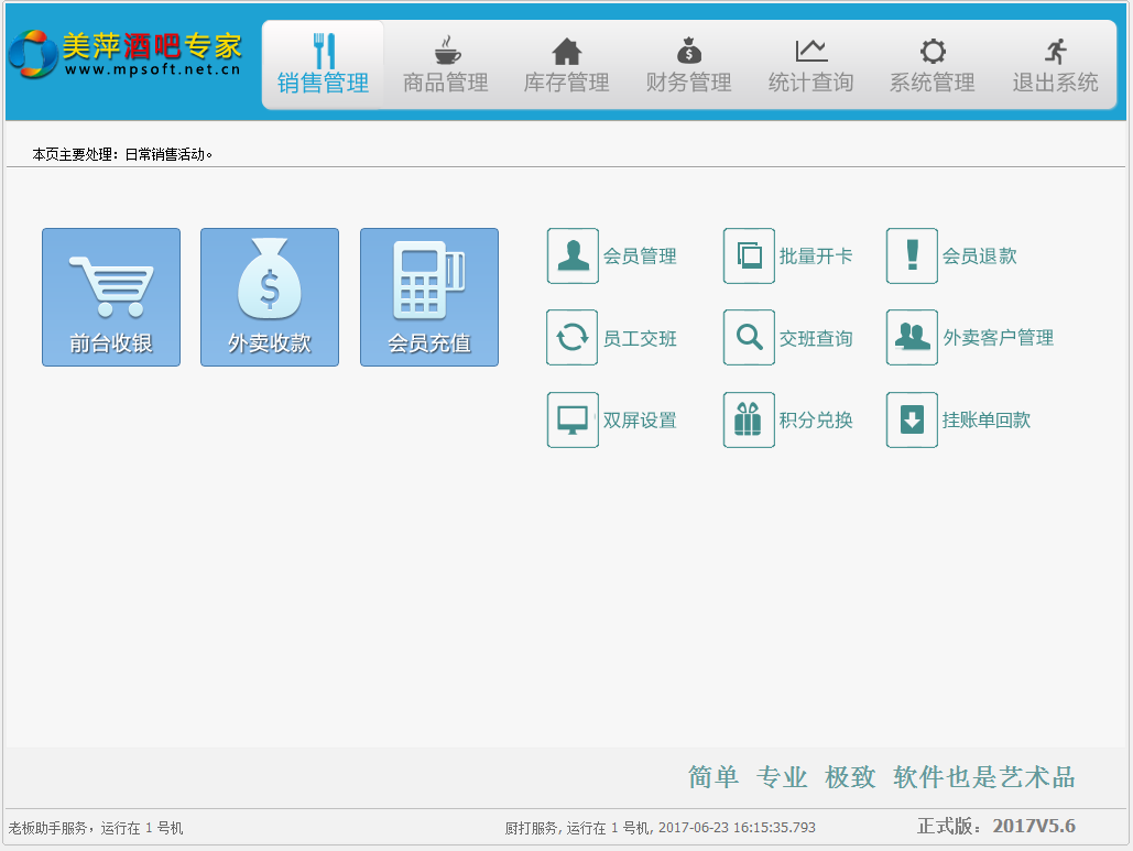 | 1.堂吃点餐消费:从系统主界面→前台收银 |