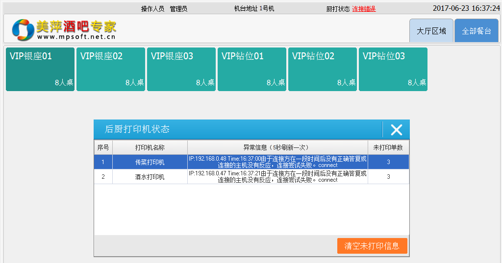 | 3.后厨打印状态:前台可以随时掌控厨房打印机的运行状况。 |