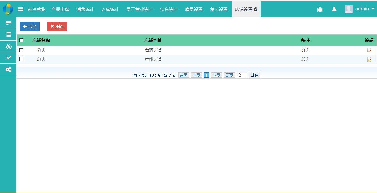 店铺设置: 查看店铺信息。添加、修改、删除店铺。