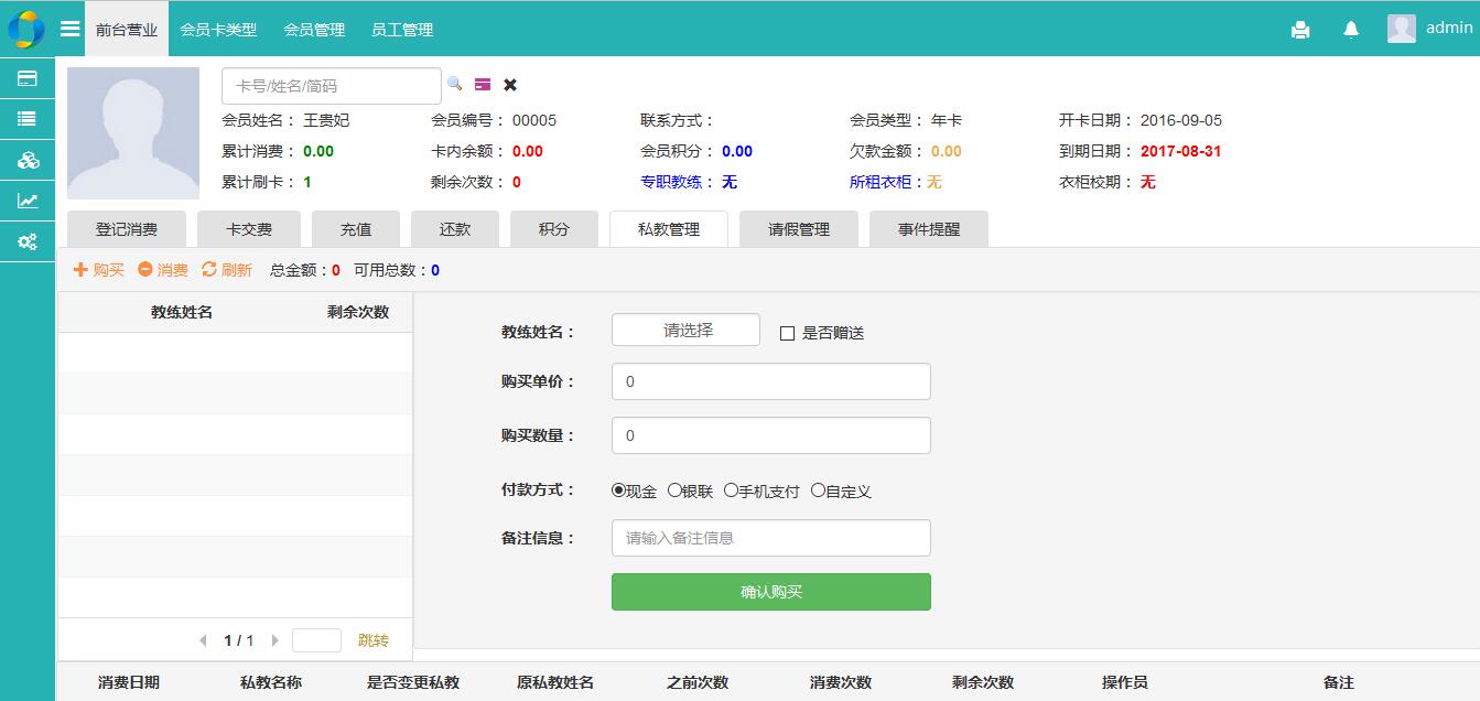 美萍健身房管理系统互联网版