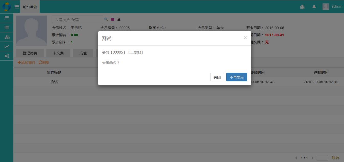 事件提醒: 设置会员或员工事件,指定特定的事件可以确定是否提醒。