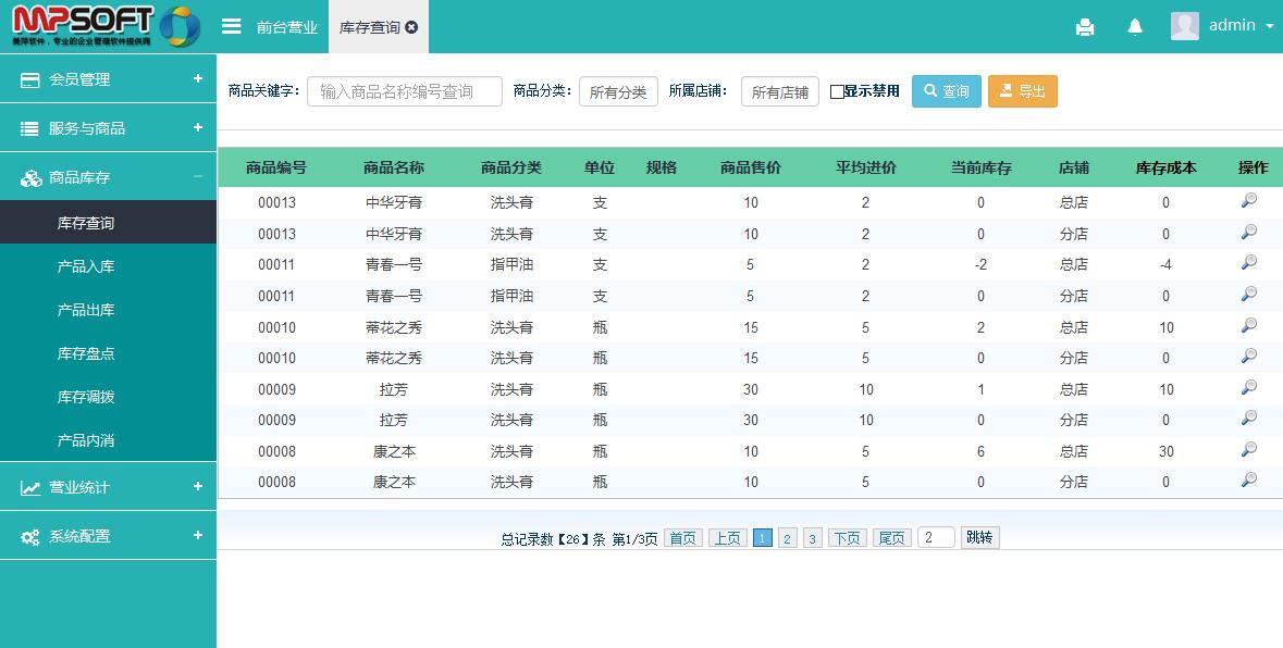 库存查询: 对正在销售的商品进行库存查询或导出