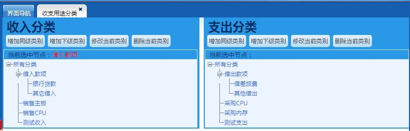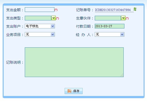 | 1.2、支出记账:记支出帐可以通过下图界面来实现 |