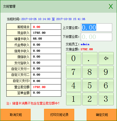 - 注意:当消费列表为空时点账单暂存会打开"提取暂存单"界面,有消费品则执行暂存功能