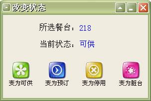 项目状态:房间项目(餐台)的当前使用状态。例如:可供、占用、停用、预定等状态。