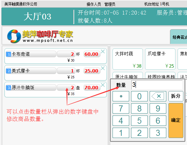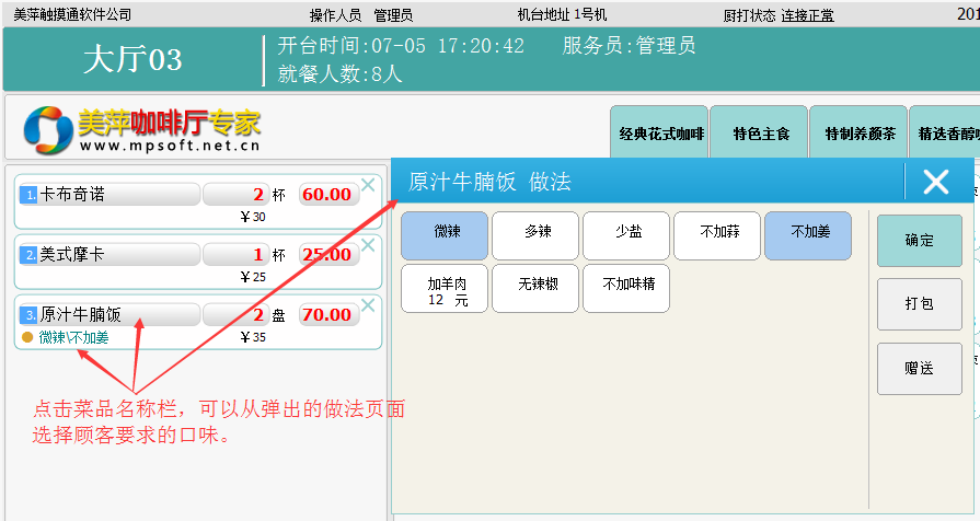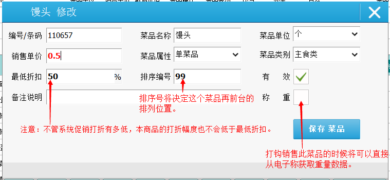 | 1.菜品沽清:分为临时沽清(隔天自动转为正常状态)和餐段长期沽清(如胡辣汤只在早餐供应,则每天超过早餐时段,胡辣汤自动进入沽清状态)。 |