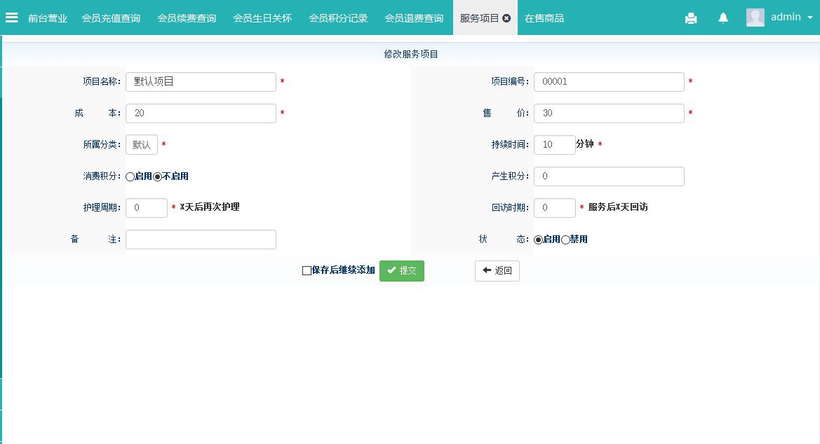 | 2.8、服务项目及商品 | |||