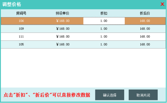 可以针对客房、商品和费用信息做不同的折扣,可以设置折扣或者折后价