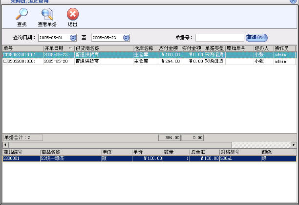 进货管理:进行商品采购入库,采购退货,进/退单据和当前库存查询,与供货商的往来帐务。