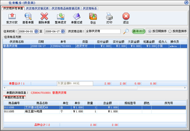 | 1、在美萍电脑行业管理系统网络版中同一个操作员是否可以同时在不同的机器上登录? 同一个操作员是不可以同时在不同的机器上登录的,因为好多操作系统都要记录下是哪个操作员操作的。 单据的单号显示的也有操作员的编号,如果同时登录可以会造成单据号的重复。 2、商品是根据什么自动编号的? 例如商品编号5400012,其中54是该商品的类别号,00012是该类商品的序号,由00001开始向后排。 3、为什么要设置默认仓库、默认供货商、默认客户,这样的好处是什么? 如果设置了默认仓库、默认供货商、默认客户,例如打开采购进货窗口,供货商名称显示的就是这个默认的供货商,仓库名称显示的也是默认的仓库。这样的好处是把那些比较常用的仓库、供货商、客户设置为默认的,在开单的时候就直接显示出来,就不用再去选择,这样就提高了工作效率。 4、为什么普通供货商、普通客户指的是什么? 普通供货商是指进货的时候只从某个单位或个人只进一次货,或者是因为某种原因没有记录下该供货商的 信息时,像这些情况都称为普通供货商。普通客户是指那些零散消费的人,和一些不愿意透露名称的客户 都叫普通客户。 5、经办人和业务员的区别是什么? 经办人和业务员指的是同一个人,都是在员工设置中增加,如果增加了一个员工,在开单窗口的经办人后将会列出该员工。 6、为什么采购进货单和业务单打印和预览出的单据显示的都是“美萍软件公司”呢?而在'其它设置'中的公司全名却打印不出来? 因为您用的是试用版,只有购买了正式版后所有打印出来的单据显示的将是您设置的公司名称。 7、如何修改操作员自己的密码? 在系统设置中点击“系统维护”按钮,在打开的窗口中点击“修改密码”即可修改当前操作员的密码。 8、如何对供货商付款? 对供货商付款可以分为三种:第一种是在采购进货的窗口中,“应付金额”是该单据中所有商品金额的累加意思是共应付给对方多少钱,在“实付金额”后可以输入实际付给该供货商的金额。第二种是在进货管理中点击“往来帐务”按钮,在出现的窗口中选择要付款的供货商,这时会列出在某段时间内与该供货商有关的采购单、退货单、付款单。然后选择要付款的进货单,点击“我方付款”按钮,在出现的窗口中选中对某个单据付款,这样会修改该进货单的实付金额。第三种是在“往来帐务”窗口中点击“我方付款”按钮,在出现的窗口中选择“新增付款单”即可增加一条新的付款单。 9、如何对客户收款? 对客户付款可以分为三种:第一种是在商品业务的窗口中,“应付金额”是该单据中所有商品金额的累加意思是客户共需要支付多少金额,在“实付金额”后可以输入实际客户支付的金额。第二种是在业务管理中点击“往来帐务”按钮,在出现的窗口中选择要收款的客户,这时会列出在某段时间内与该客户有关的业务单、退货单、付款单。然后选择要收款的业务单,点击“收款”按钮,在出现的窗口中选中对某个单据付款,这样会修改该业务单的实付金额。第三种是在“往来帐务”窗口中点击“收款”按钮,在出现的窗口中选择“新增收款单”即可增加一条新的收款单。 10、如何建立期初帐? 在程序第一次正式使用的时候需要建立期初帐,首先确定程序没有进行过采购或业务等业务来往。在“系统设置”中点击“商品信息”按钮,在出现的窗口中选择建立商品期初帐。在增加供货商或客户时可以输入期初应付或期初应收,如果该供货商或客户发生了业务将不能再修改期初应付或期初应收。 11、系统中如何区分大单位和小单位? 系统中默认采用小单位,即以业务时的更小业务单位为准;采购进货时的进货单位也是以更小单位为准。 12、系统中采用什么成本结算方法? 本系统提供加权平均算法和先进先出算法。默认是采用加权平均法。 13、如何使用远程库存查询功能? 在软件中我们提供了一个WEB方式的库存查询功能,您可以在局域网中任何一台 机器上使用IE进行库存查询,通过系统设置可以选择是否显示进价。 设置很简单,进入我们软件的设置在远程访问设置那设置上端口号,以后就可以在客户端用 http://服务器ip地址:888 即可远程查询库存. 14.电脑配件的序列号必须要输入到程序中吗?输入后能找到吗? 软件中的电脑配件序列号信息并不是强制要求输入的。客户可以输入,也可以不输入。如果输入序列号,在“单据、序列号查询”窗口中可以根据序列号找到和这个序列号所对应的商品的所有相关单据。 |