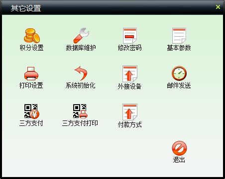 | 包括积分设置、数据库维护、修改密码、基本参数设置、打印设置、系统初始化等操作。 | |