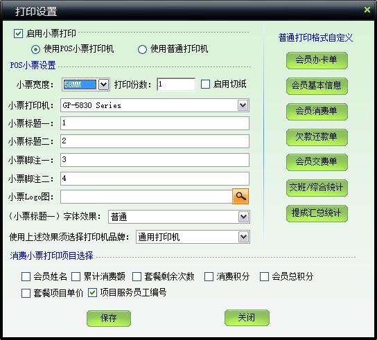 | 可设置小票打印和报表打印两种方式,其中报表打印可自行设置报表的详细格式 |