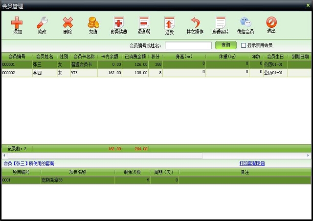 | 包括会员基本信息的管理,如添加、修改、删除会员,充值,套餐续费,退套餐,导入导出会员信息,查看会员照片等 | |