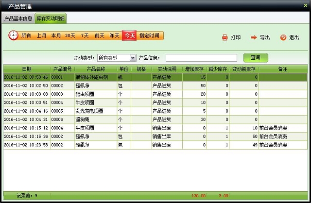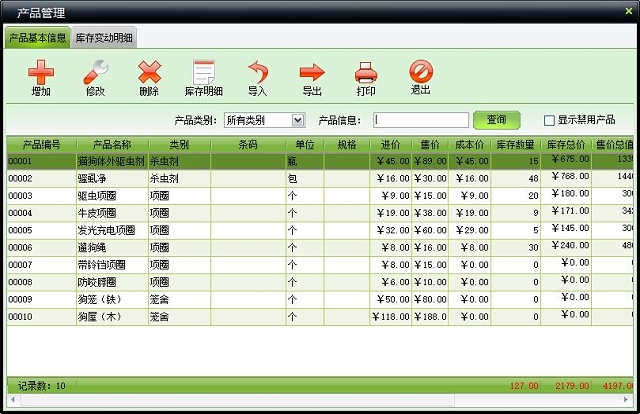 | 包括产品基本信息管理、入库、出库等操作,可设置产品套装 | |