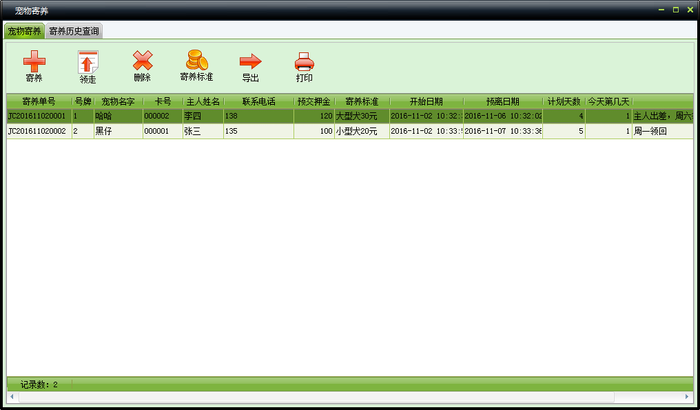 | 2.1.10、宠物寄养 | |